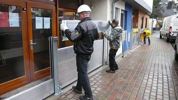 Die Hochwasserschutz-Spezialisten montieren das System in kürzester Zeit und bewahren den Hauseigentümer damit vor großem Schaden. (Foto: epr/RS Stepanek)