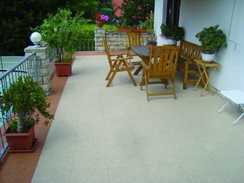 Ganz schön elastisch! Bodenfliesen aus Marmorkies werten den Außenbereich auf