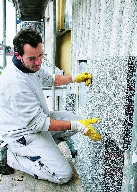 Schöne Bilder und Beispiele, wie man mit Carbon von Caparol eine Fassadendämmung aufbaut, habe ich hier gefunden: