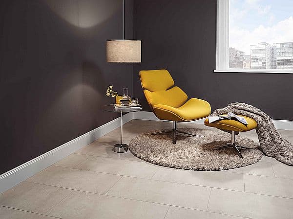 Auch Küche, Flur oder Wohnzimmer können mit den neuen flatile-Fliesen schnell und unkompliziert renoviert werden. Sie ersetzen nahezu höhengleich bisherige Teppich-, Laminat- oder PVC-Böden. Foto: AGROB BUCHTAL