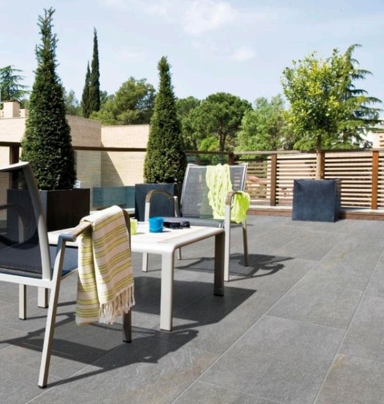 Eine Gefahr durch rutschige Fliesen lauert nicht nur im Bad, sondern auch draußen, beispielsweise auf der Terrasse. Rutschhemmende Fliesen bieten jedoch zuverlässigen Schutz vor Fehltritten und Ausrutschern. (Foto: epr/cero-epr.de)