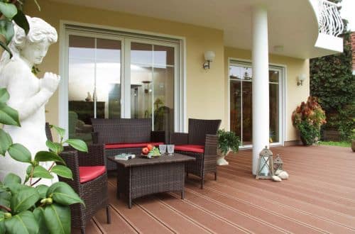 Freundliches Naturbraun, luxuriöses Nussbraun oder modernes Basaltgrau – die Farbtöne, in denen die Massivdiele erhältlich ist, fügen sich unaufdringlich in den Außenbereich ein. (Foto: epr/megawood)