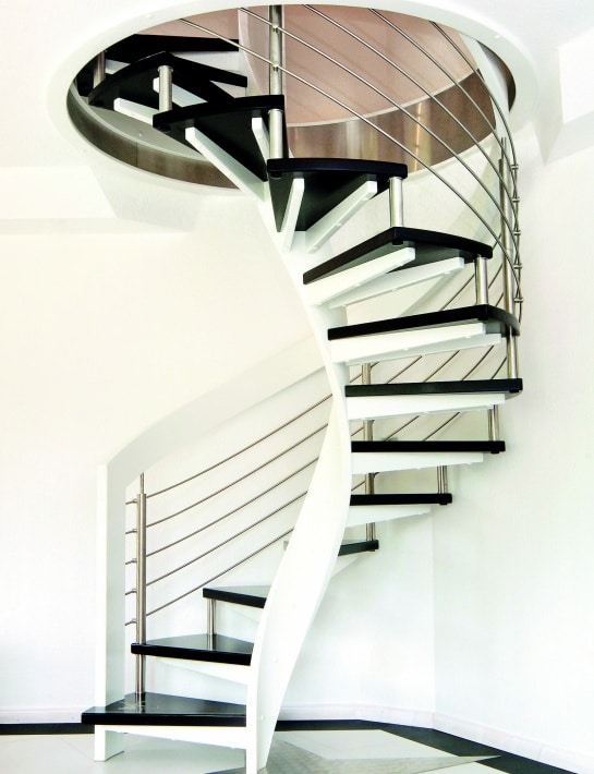 Kontrastreiche Wendeltreppe erfüllt den Wunsch nach moderner Architektur