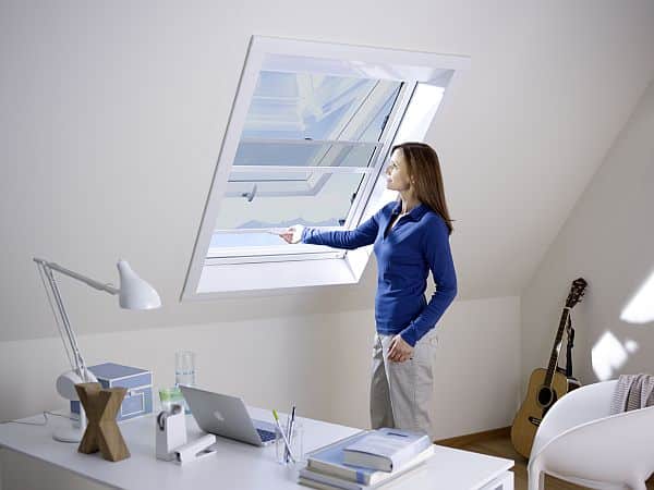 Dank des Neher-Schieberahmens kann das Pollenschutzgitter auch an schrägen Dachfenstern lückenlos und spaltfrei montiert werden, sodass eine pollenfreie Umgebung entsteht. (Foto: epr/Neher)